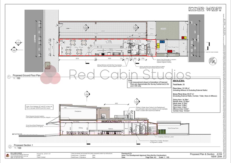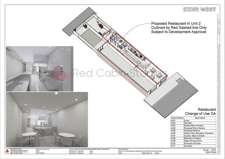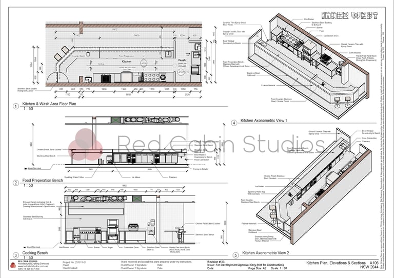 Turning an existing space into a café or restaurant involves more than just creative planning—it requires precise drafting to meet council and regulatory requirements. At Red Cabin Studios, we specialize in change of use DA plans, ensuring compliance with The Australian Standard 4674-2004: Design, Construction and Fit-out of Food Premises, accessibility standards, and local planning regulations. From efficient kitchen layouts to customer-friendly dining areas, we ensure every detail is addressed to achieve smooth council DA approval.