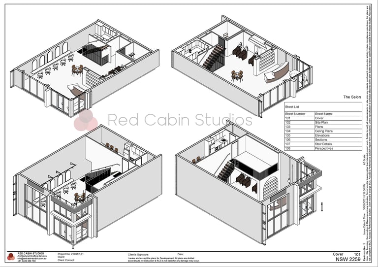 Redefine style spaces with our architectural drafting expertise, specializing in development approval for hair salon fit-outs or conversions. Our tailored plans ensure compliance with council regulations, covering layouts, plumbing, Sydney Water approvals, and ventilation. Seamlessly transform spaces into functional and inviting salons that prioritize customer comfort and operational efficiency.