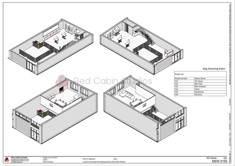 Let Red Cabin Studios help you create a compliant and functional dog grooming facility. Contact us today to discuss your project and secure your council DA approval in Sydney with confidence.