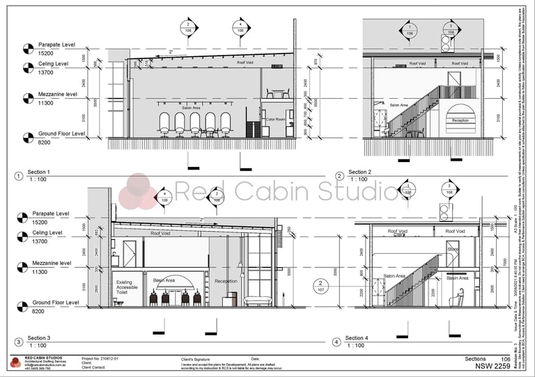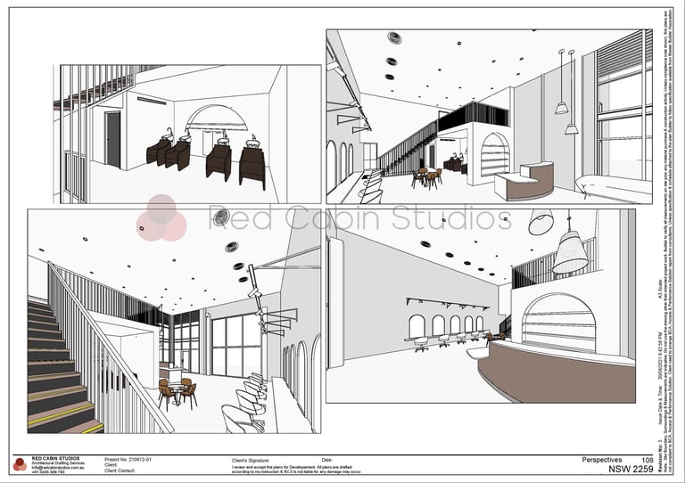 Transforming an existing space into a hair salon is an exciting opportunity, but it requires detailed drafting to meet council DA approval requirements. At Red Cabin Studios, I specialize in providing tailored DA plans for quick fit-out DA approval. Whether you're starting fresh or repurposing an existing space, I ensure your project is compliant with Sydney’s regulations, allowing you to open your salon without unnecessary delays.